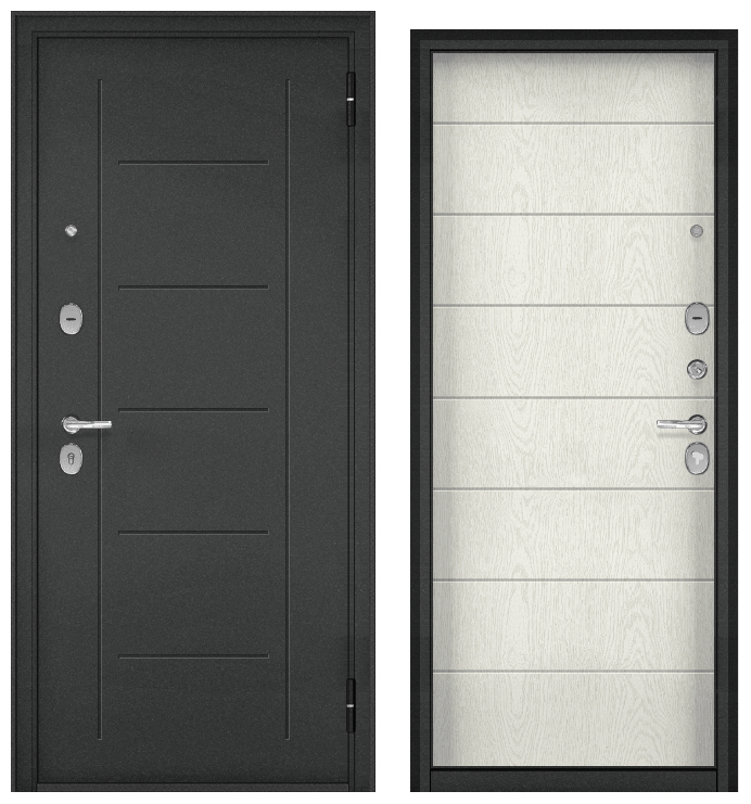 ТРАСТ ЭКО, тисн.РЛ-4, МДФ дуб белый скандинавский 9E-135 (2050*960, правая, Ночная задвижка, букле антрацит, хром)