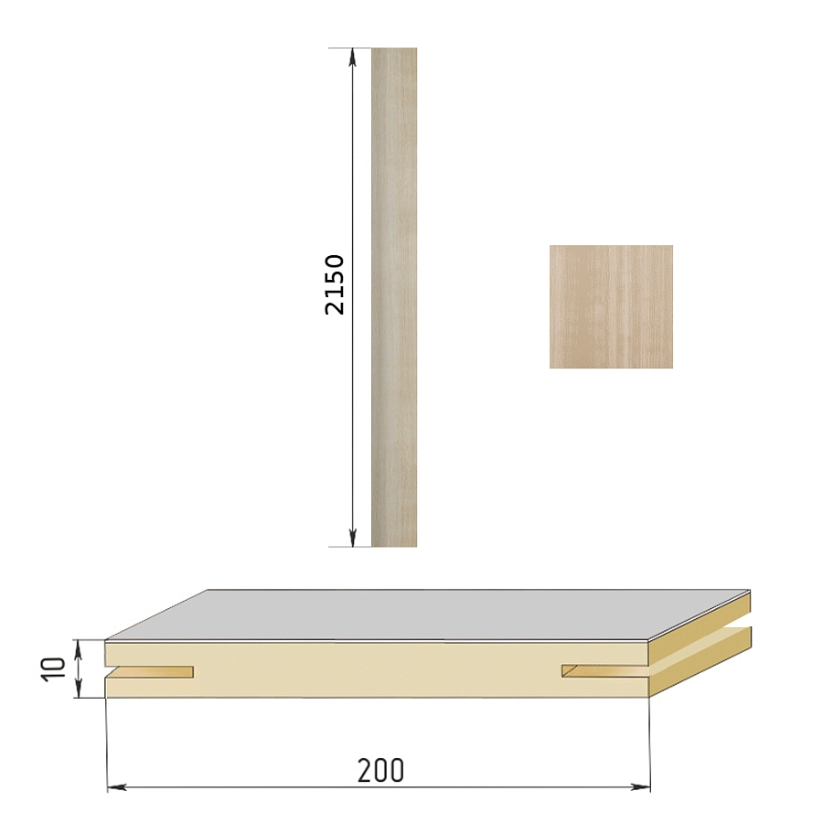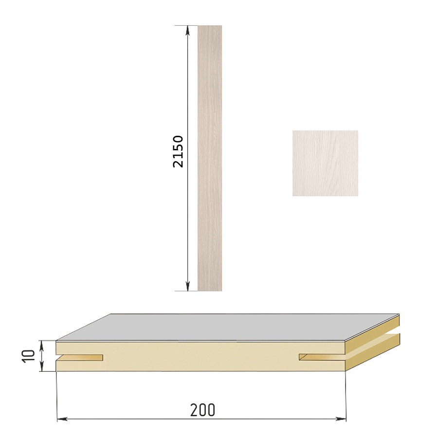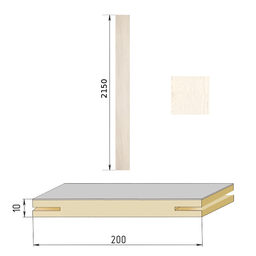 Добор телескопический (1шт*2,15м) для Бульдорс, МДФ шириной 200мм, покрытие ПВХ (шамбори светлая)