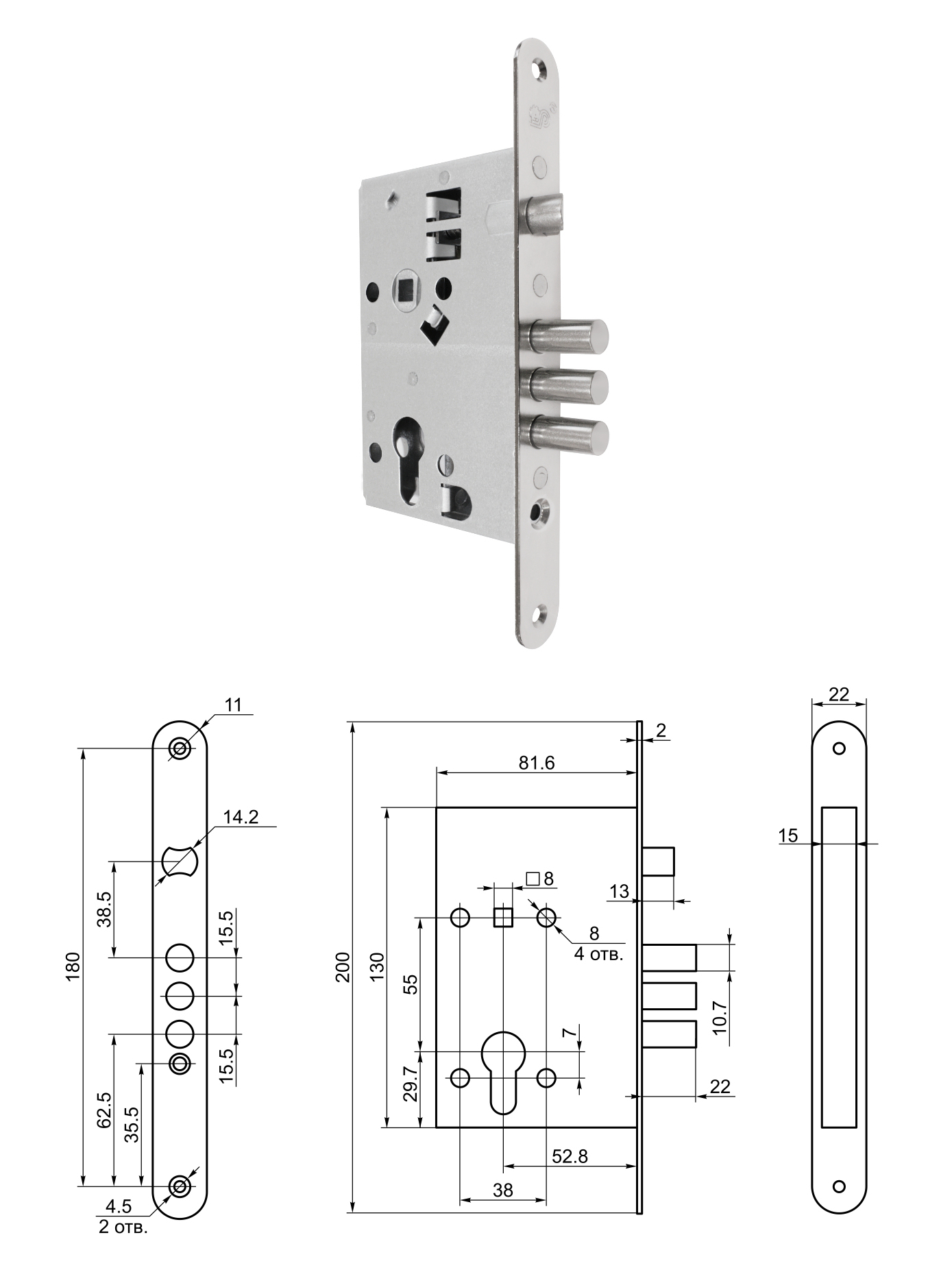 Замок врезной ПРОСАМ ЗВ4/31.55 (замок б/ручек (закругленная форма планки))