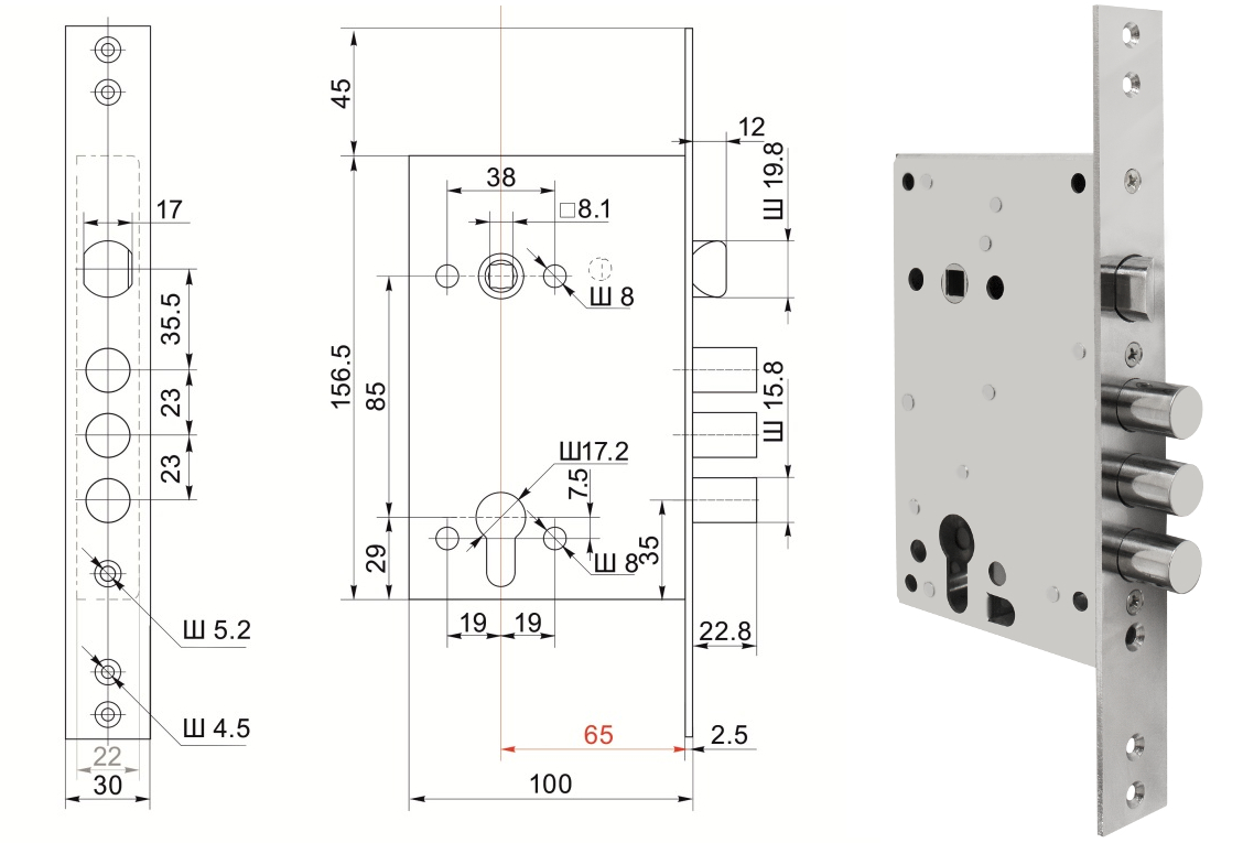 • Замок Бордер 3В4-3 85Г (цилиндровый