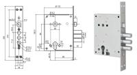 Замок врезной основной цилиндровый. Замок предназначен для установки в металлические двери и шкафы, а также сейфы. Рекомендуемый размер полотна двери составляет 30-75 мм. Направление открывания меняется на замке путем выдавливания и проворачивания защелки. 4 класс взломостойкости. Организация засова — 3 цилиндрических ригеля диаметром 15.7 мм. Выход засова 39.5 мм. Закрытие замка осуществляется с помощью двух оборотов ключа. Цилиндр ключ-вертушка. В комплекте 5 ключей.