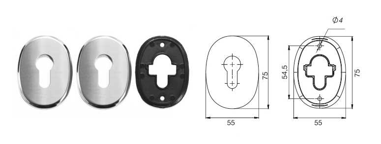 Накладка декоративная овальная (цил.)  (хром) (МОН- ЛЭ(75*55мм) хром цилиндр малая)