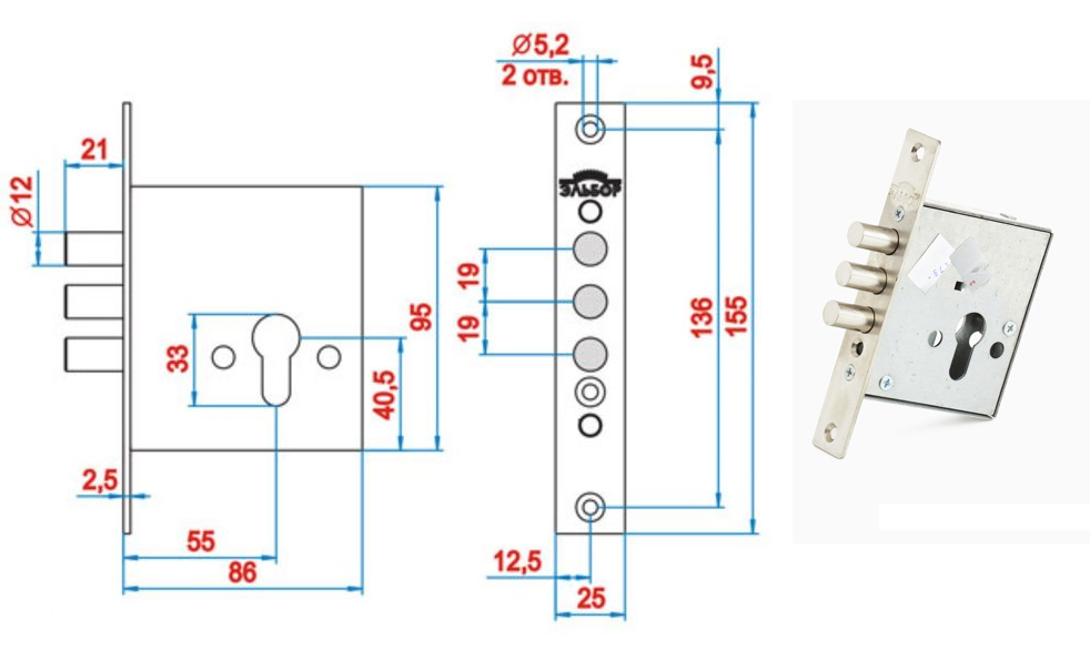 Замок врезной цилиндровый Эльбор Кремень ВП(3-37) б/п 03.02(03.03)