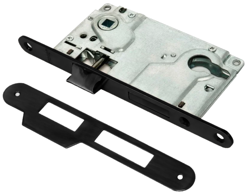 Замок врезной под цилиндр с ригелем РЕНЦ (черный, арт. INLBB 8550-2/1, с ригелем B)