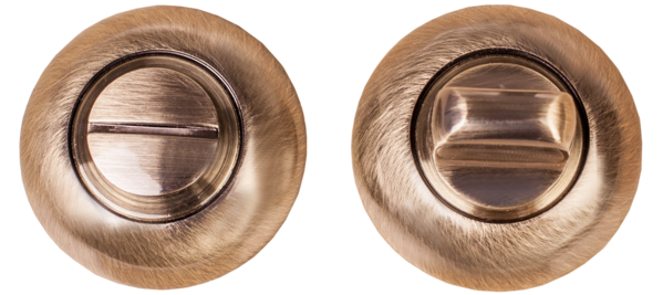 Завертка выполнена в стилистике дверных ручек, имеет тот же цвет, аналогичную форму розетки и снабжена удобным поворотным вертушком.