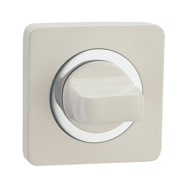 Завертка на квадратной розетке РЕНЦ (белый супер матовый/хром блестящий, арт. INBK 02 MSW/CP)