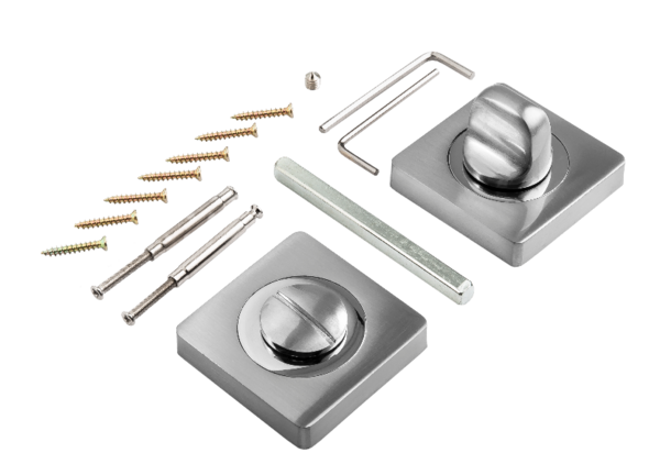 Предназначена для дверей сантехнических и иных помещений, требующих запирания изнутри, устанавливается вместе дверной ручкой и сантехнической защелкой.